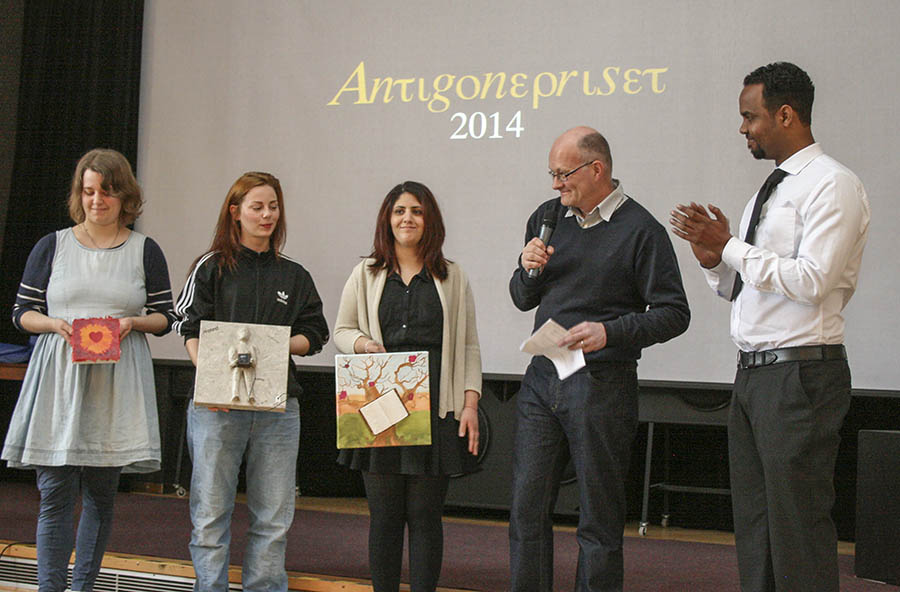 Juryn för det sjunde Antigonepriset har bestått av sex personer: Ilona Zaytoun och Alinde Thorén, studerande, rektor Tomas Rydsmo, styrelsens ordförande Kerstin Gröning samt lärarna Jaap Knevel och Stefan Johansson.