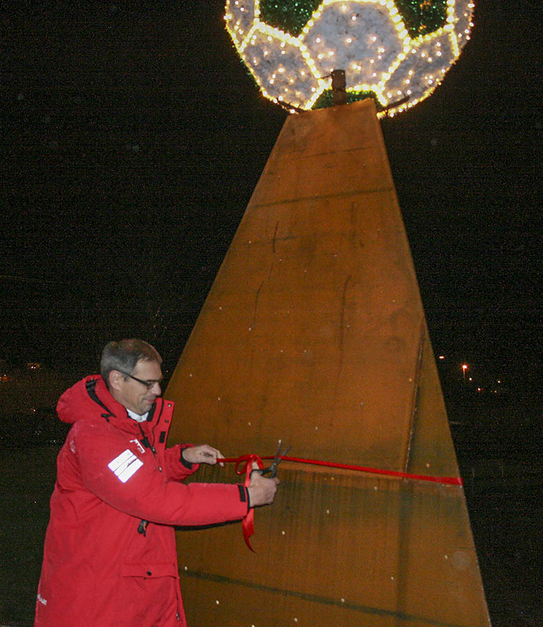 Efter en inledning av Stefan Edman, där han relaterade det lysande klotet/fotbollen till vårt klot och miljökonferensen i Paris, blev det dags för Björn Wolgast. Han poängterade Uddevalla Energis lokala anknytning och såg det mer eller mindre som självklart att ställa upp och hjälpa till.