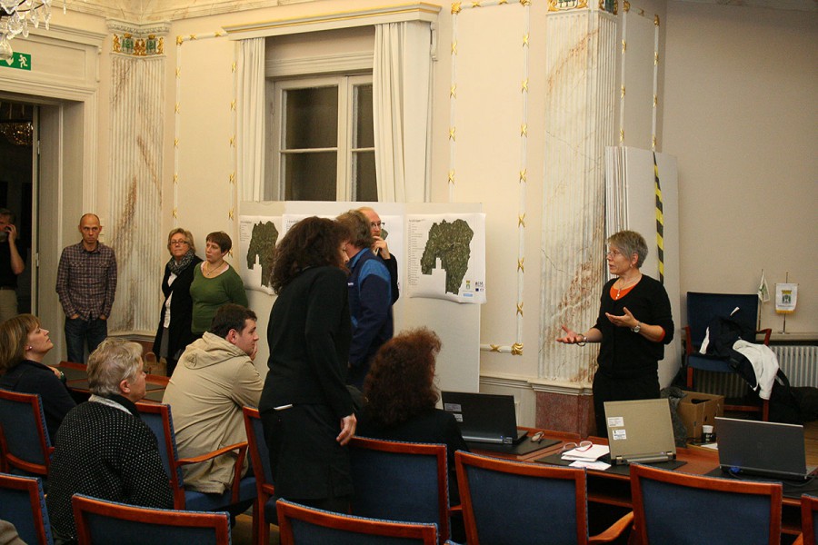 Gunilla Magnusson (MP) på uppföljningsmötet. Gunilla sitter ensam närmast kameran längst till vänster.